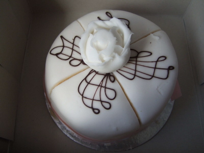 Unsere Überraschung auf dem Rückflug: Eine Hochzeitstorte!